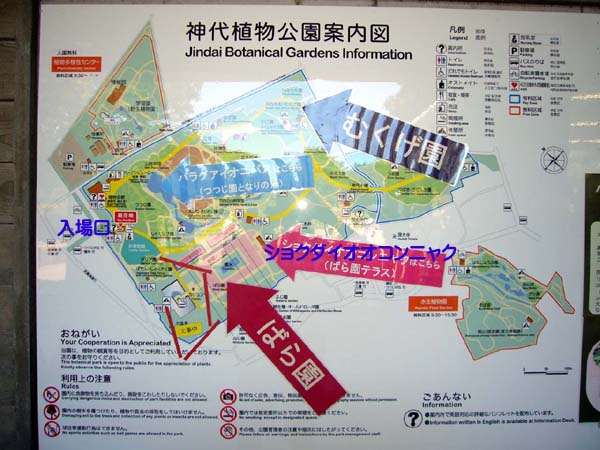 入場して「オオコンニャクはこちらのバラ園テラス」 と案内通りに早足で