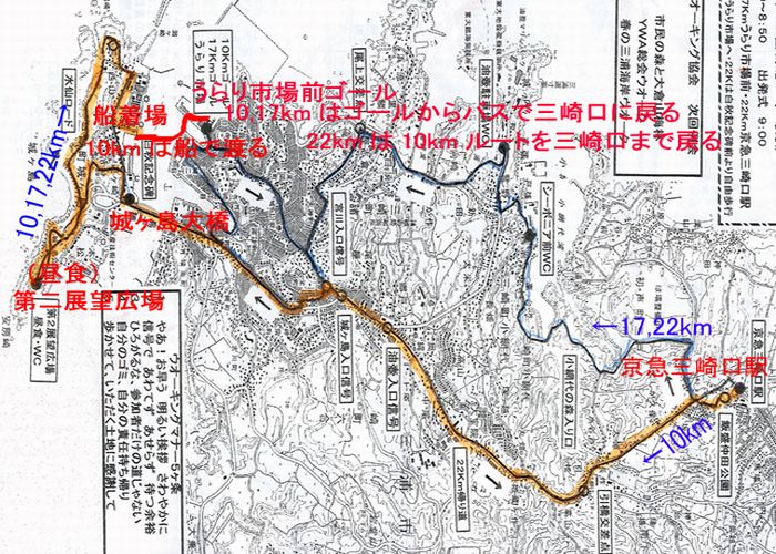 京急三崎口駅ー城ヶ島ー三崎口 10km, 17km, 22km