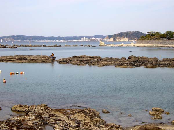 前方左端の島が江の島とのこと、その右が鎌倉あたりになる
